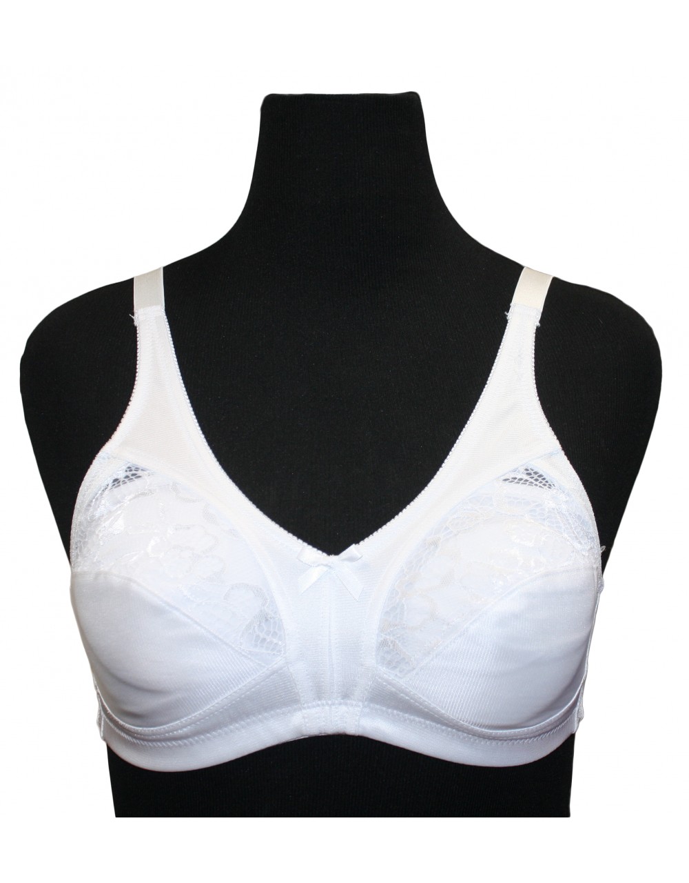 WHITE FULL FIGURE SATIN & LACE BRA